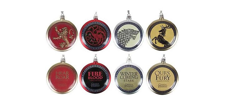 Vous aimez Game Of Thrones ? Vous voulez embellir votre arbre de fête, maison ou autre de « Winter Is Coming » ? Je vous propose alors ces 4 boules. Chacune porte l’emblème d’une des maisons Game of Thrones ainsi que la devise de celle-ci. Elles mesurent chacune 8.5cm et sont faites en plastique. 8,90 euro pour la décoration Game of Thrones.