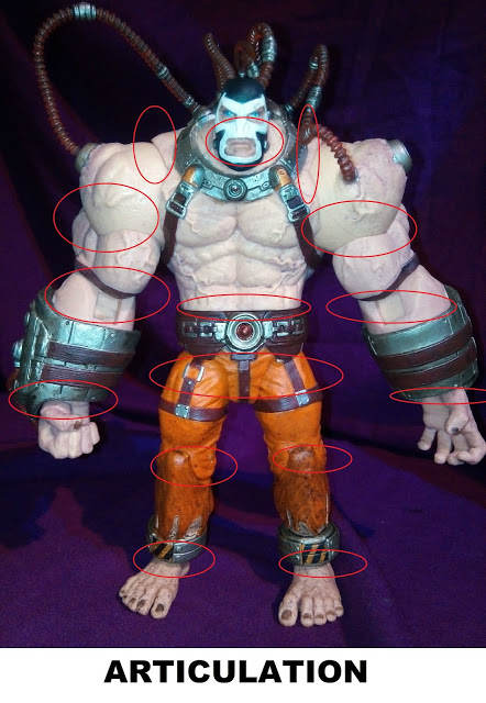 En effet en plus d’une re-colorisation de certains détails par rapport au précédent Bane, qui lui, est sorti un peu après le jeu vidéo ( couleur des veines , et de sa « tuyauterie »). La vraie innovation vient de l’ajout d’articulations qui manquent cruellement à l’ancienne version.