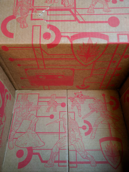 Si vous ne l’avez pas encore compris, le thème de cette boite est le dernier film Marvel, les Gardiens de la Galaxie. Comme d’habitude je commence par admirer la boite et ses dessins. Bon, rien de woahooo comparé aux boites passées.
