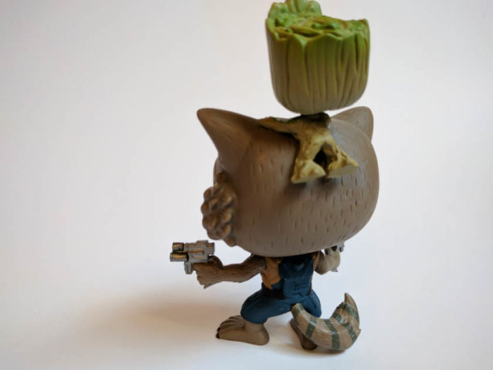 Ah la figurine principale, c’est toujours une surprise car on sait jamais sur quoi on va tomber et elle est souvent très originale comparé à toutes les autres qui sont en vente dans les grandes surfaces. Bon déjà elle est génial cette figurine, Rocket et Groot qui se battent ensembles. L’originalité de cette figurine c’est le petit Groot qui lui aussi balance de la tête et qui est fixé sur le dos the Rocket. Je suis in love.