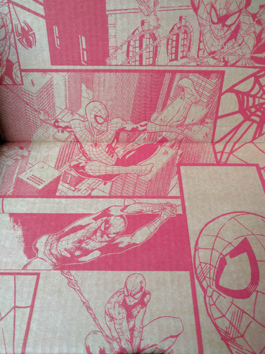 Cette fois le thème du contenu de la boite est… Spider-Man, l’homme araignée. Un personnage que j’adore, comme beaucoup de monde je pense. Il a toujours de la répartie lors de ses combats et s’appitoye toujours sur son sort, peut être le super-héros le plus réaliste qui soit. Et je parle même pas des toiles d’araignée qu’il lance pour pouvoir se balancer d’immeuble à immeuble. Voici donc ce que contenant cette boite Collector Corps Spider-Man.