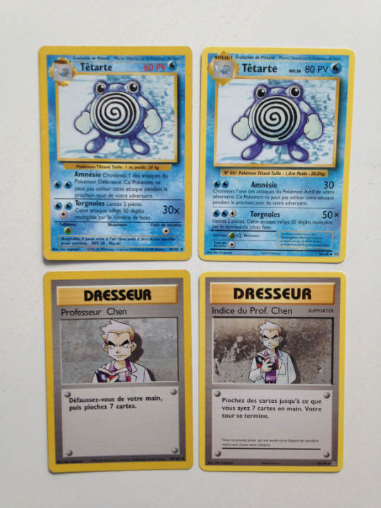 Il y a quand même quelques « petites » différences entre les versions 1999-2016. La brillance, la présence de cartes TURBO, EX, EX MEGA, EX FULL ART ( sans compter les SECRETES ) et un design remanié pour faire plus moderne. Malheureusement, j’ai déploré l’absence de certains Pokémons dans leur version d’origine. Donc pas de Tortank ou Florizarre sous leur forme Wizard…l’extension set de base n’a pas été rééditée dans son intégralité, dommage…vraiment dommage, même si de nouvelles cartes ont été ajoutées ( notamment des cartes dresseurs )