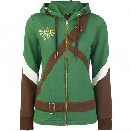 Si vous aimez briser de la poterie à la recherche de rubis, ou chasser les poules dans la cours, alors ce magnifique sweat Link cosplay pour femme, sera parfait pour vous. S’inspirant du costume porté par le héros de tous les opus de The Legend of Zelda, vous pourrez le porter pour une convention, Halloween ou au jour le jour.
