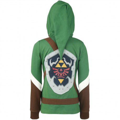 De multiples détails sont reproduits, comme la capuche en forme de bonnet Hylien, les ceintures et bien sûr le bouclier Hylien décorant le dos. Il est en coton et en polyester, et possède une poche de chaque côté. Ce sweat fera un beau cadeau pour une fan du monde Zelda.